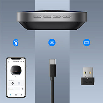 Get a strong and reliable connection between your device and PowerConf S500 via either Bluetooth 5, dongle, or with USB-C cable (both included).