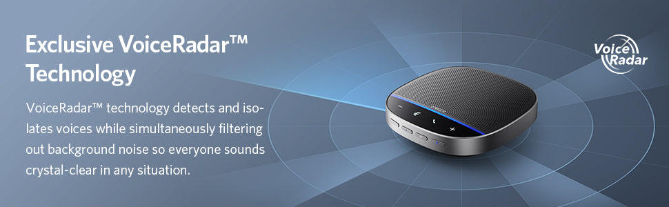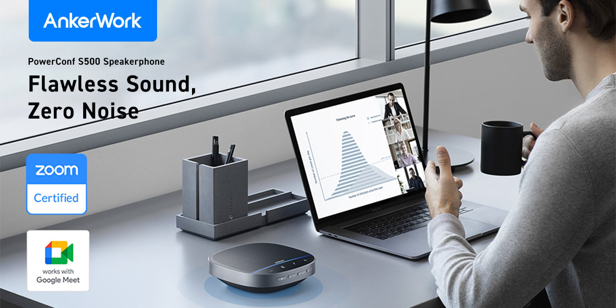 PowerConf S500 balances volume level so people sitting far away or speaking quietly sound consistently loud and clear.