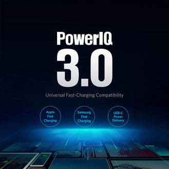 PowerIQ 3.0 provides full-speed charging with support for Qualcomm Quick Charge and USB-C Power Delivery for phones, tablets, laptops, and more.