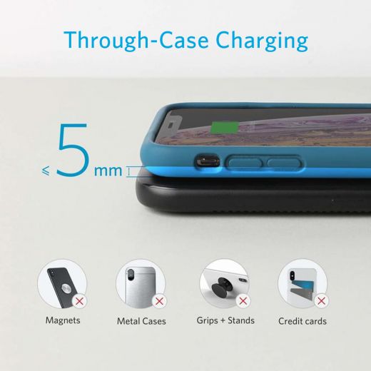 A Quick Charge 2.0 or 3.0 wall charger is required for fast charging. The standard charge mode also requires at least 5V/2A. iPhone stock chargers are not compatible with PowerWave Base Pad. Note: Please use the included cable for best results.