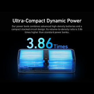 Our power bank combines advanced high-density batteries and a compact stacked circuit design. Its volume-to-density ratio is 3.86 time higher than standard power banks.