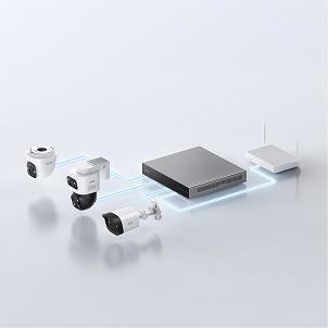 Avoid complex wiring and use a single cable to connect your eufy PoE cameras to a network video recorder for power and video.