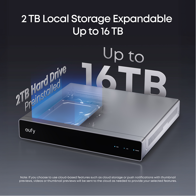 The NVR's local AI agent sees, thinks, and acts like a human to deal with threats in real time. Note: If you choose to use cloud-based features such as cloud storage or push notifications with thumbnail previews, videos or thumbnail previews will be sent to the cloud as needed to provide your selected features.
