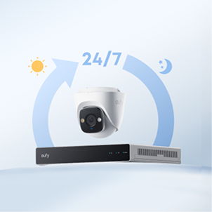 Avoid complex wiring and use a single cable to connect your eufy PoE cameras to a network video recorder for power and video.