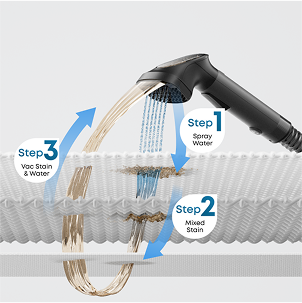 Recognises 30+ stain types and adjusts cleaning accordingly. Liquid stains on carpet, alerts you to use the portable deep cleaner. Stubborn stains, increase cleaning frequency for tough messes. Dirt inspection, a check is performed after cleaning to confirm that no spots were missed.