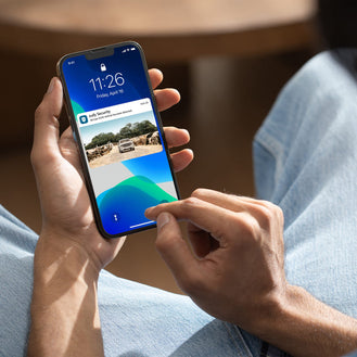 Optional use of the 100-lumen spotlight and sound alarm to deter intruders and threats.