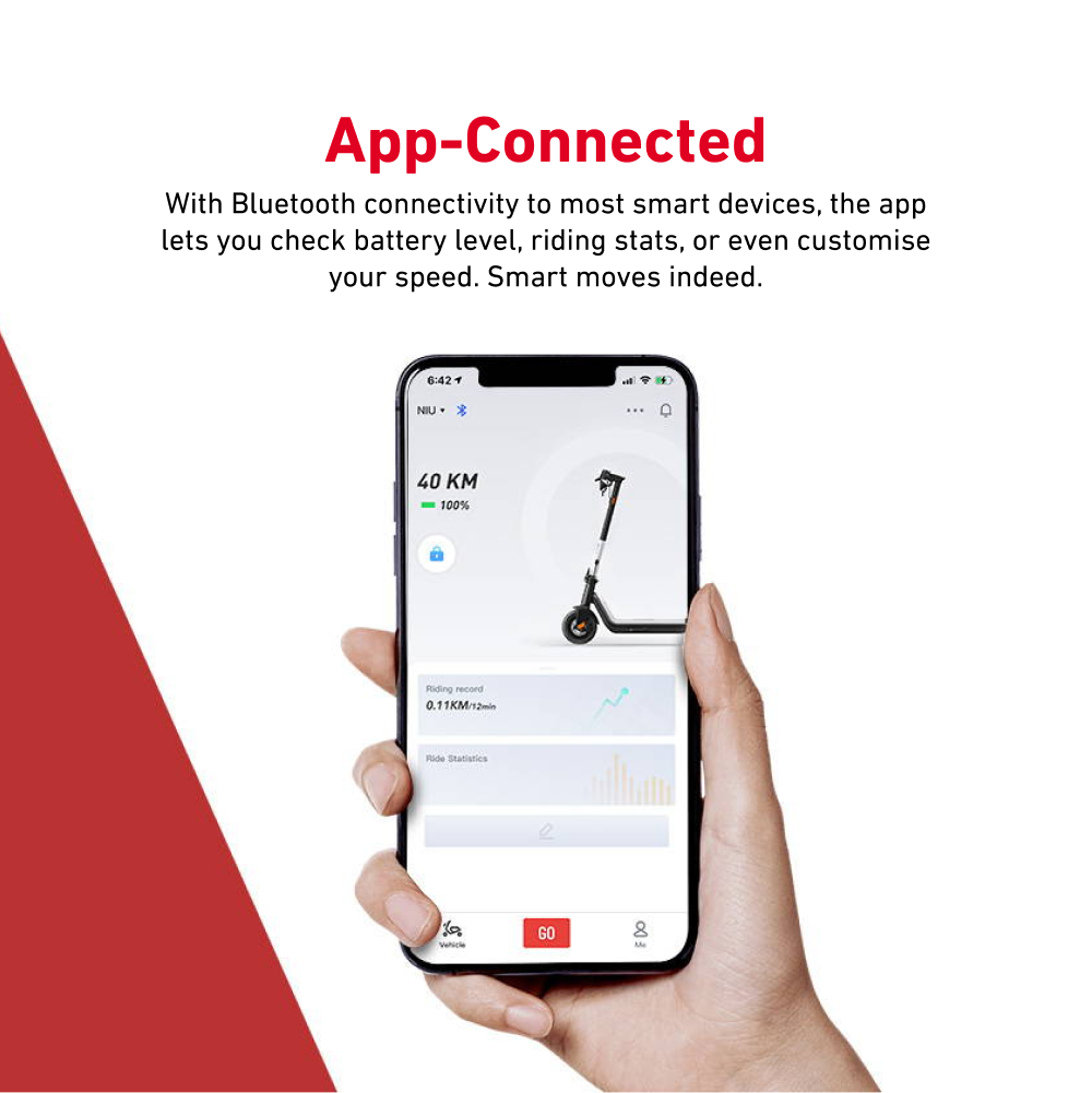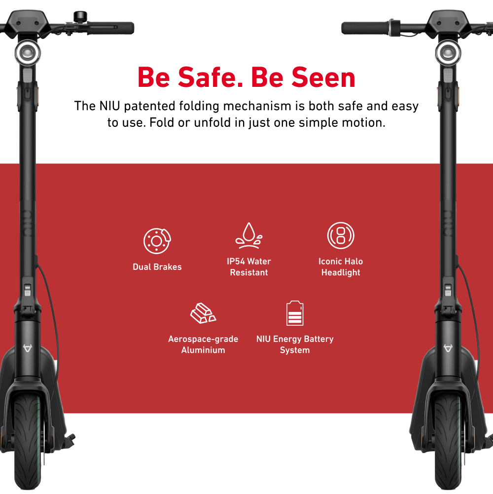NIU brings daytime running lights to kick scooters. With the taillight and braking light, you'll be seen from every direction.